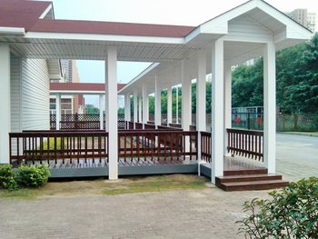 应苏州德威英国国际学校要求,在我司原先承接的二栋拆装式木结构教室之间,以及一期拆装式木结构教室与原土建办公室之间分别搭建风雨廓,以让师生在下雨时工作学习免受雨淋。项目必须在学校暑期完成,经过我司的精心安排,后场预制作,项目在2014年7月30日提前竣工交付,该项目班组已转战南京溧水工地。